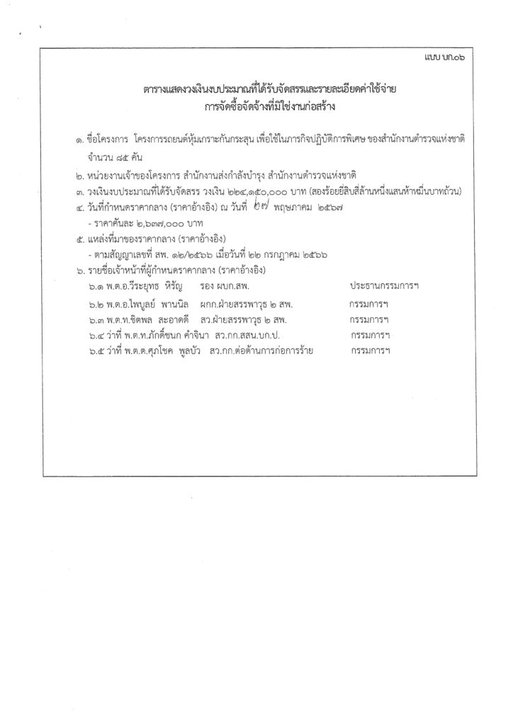 ข้อมูลราคากลางโครงการรถยนต์หุ้มเกราะกันกระสุน
