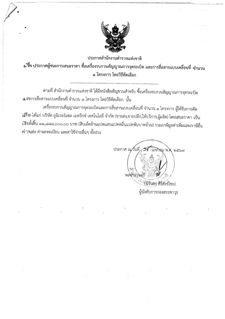 ผู้ชนะการเสนอราคาซื้อเครื่องรบกวนสัญญาณการจุดระเบิด และการสื่อสารแบบเคลื่อนที่