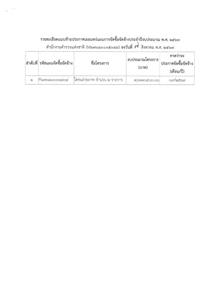 แผนการจัดซื้อโดรนถ่ายภาพ จำนวน 2 รายการ