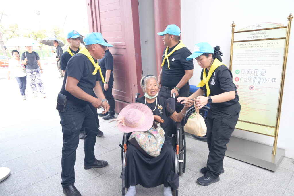 จิตอาสาพระราชทานอำนวยความสะดวกให้กับประชาชนที่เดินทางไปถวายสักการะพระบรมศพสมเด็จพระนางเจ้าสิริกิติ์ พระบรมราชินีนาถ พระบรมราชชนนีพันปีหลวง
