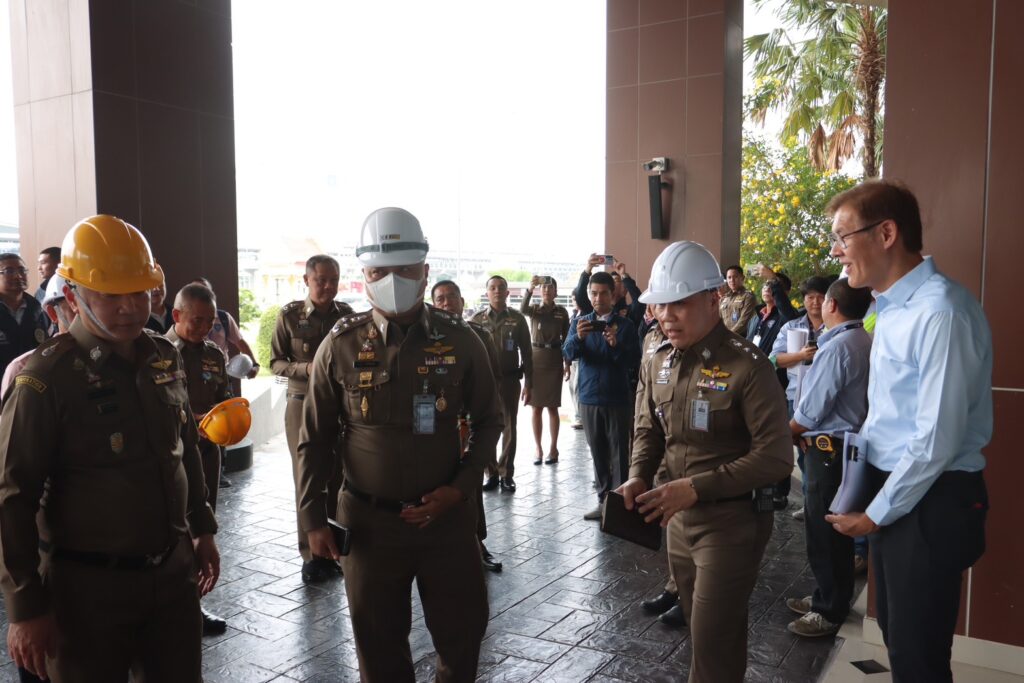 พล.ต.อ.กรไชย คล้ายคลึง รอง ผบ.ตร.(บร) พร้อมคณะ ได้ร่วมสำรวจความเสียหายของอาคาร ที่ทำการ บช.สตม และ บช.สอท (อาคาร 30 ชั้น)และอาคารที่พักอาศัยของข้าราชการตำรวจ เมืองทองธานี จากกรณีเเกิดเหตุแผ่นดินไหวจากประเทศพม่าและมีผลกระทบถึงประเทศไทยเมื่อวันศุกร์ ที่28 มี.ค.ที่ผ่านมาโดยมี พล.ต.ท.ภาณุมาศ บุญญลักษม์ ผบช.สตม.,พล.ต.ท.ไตรรงค์ ผิวพรรณ ผบช.สอท.,พล.ต.ต.สมิทธิ สุวรรณสุขโรจน์ ผบก.ยธ.,นายณธเมธฐ์ เมธาโรจนอนันต์ ตัวแทนวิศวกร จากบริษัทผู้ก่อสร้างอาคารและนายไพบูลย์ ตันศิริอนุสรณ์ วุฒิวิศวกร และคณะร่วมสำรวจความเสียหาย